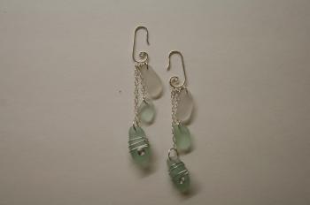 Combination earrings of wrapped and drilled, complimenting a beautiful select sterling earwire.