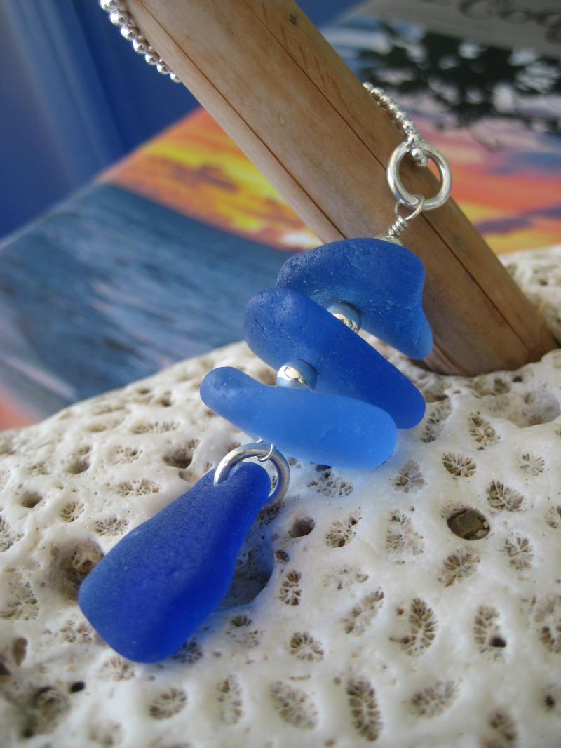 This blue stack is rare and nice. It is a blend of colbalt and cornflower blues in all sterling setting. Very well worn and complimented with a 20" 1.5mm ball chain.